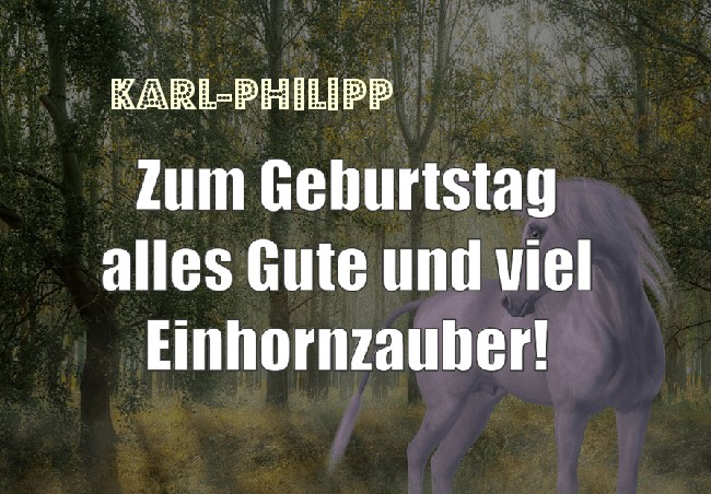 Hier Variation - Zum Geburtstag alles Gute und viel Einhornzauber für Karl-Philipp!. uf dem Gelande gibt es noch andere kostenlose Bilder mit Namen.