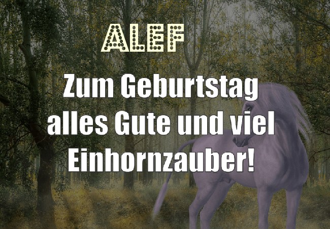 Hier Variation - Zum Geburtstag alles Gute und viel Einhornzauber für Alef!. uf dem Gelande gibt es noch andere kostenlose Bilder mit Namen.