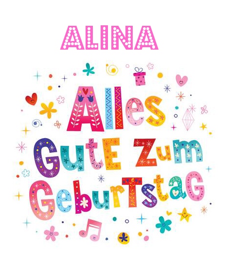 Hier Variation - Bunte Geburtstagsgrüße für Alina. uf dem Gelande gibt es noch andere kostenlose Bilder mit Namen.