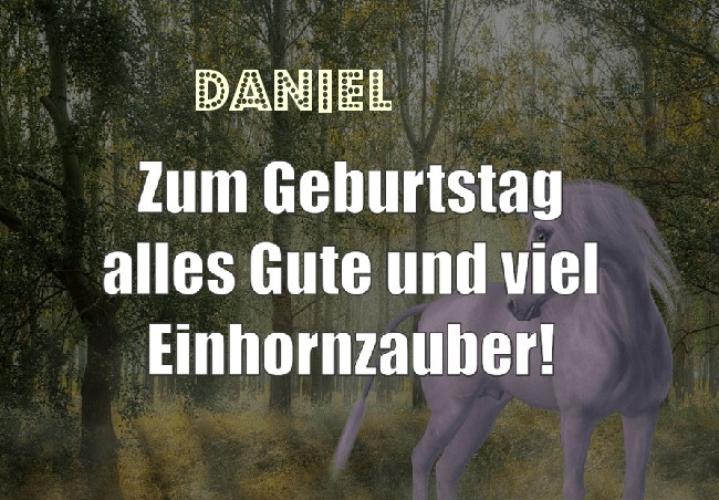 Hier Variation - Zum Geburtstag alles Gute und viel Einhornzauber für Daniel!. uf dem Gelande gibt es noch andere kostenlose Bilder mit Namen.