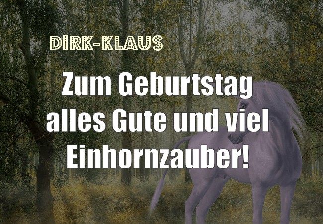 Hier Variation - Zum Geburtstag alles Gute und viel Einhornzauber für Dirk-Klaus!. uf dem Gelande gibt es noch andere kostenlose Bilder mit Namen.
