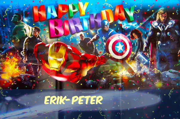 Hier Variation - Geburtstagsgrüße für Erik-Peter von den Marvel-Helden. uf dem Gelande gibt es noch andere kostenlose Bilder mit Namen.