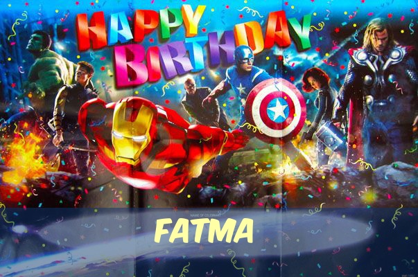 Hier Variation - Geburtstagsgrüße für Fatma von den Marvel-Helden. uf dem Gelande gibt es noch andere kostenlose Bilder mit Namen.