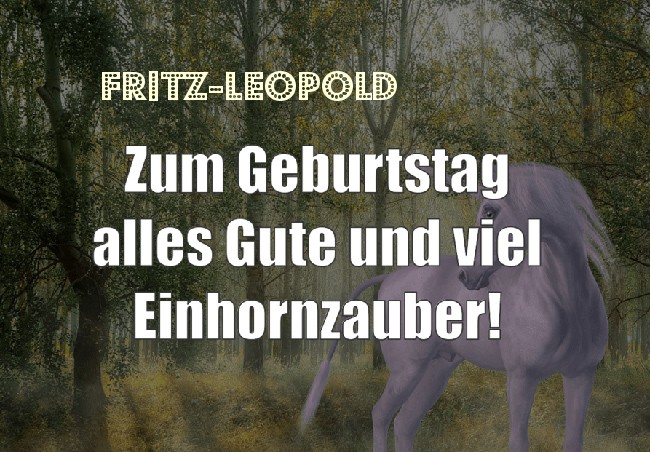 Hier Variation - Zum Geburtstag alles Gute und viel Einhornzauber für Fritz-Leopold!. uf dem Gelande gibt es noch andere kostenlose Bilder mit Namen.