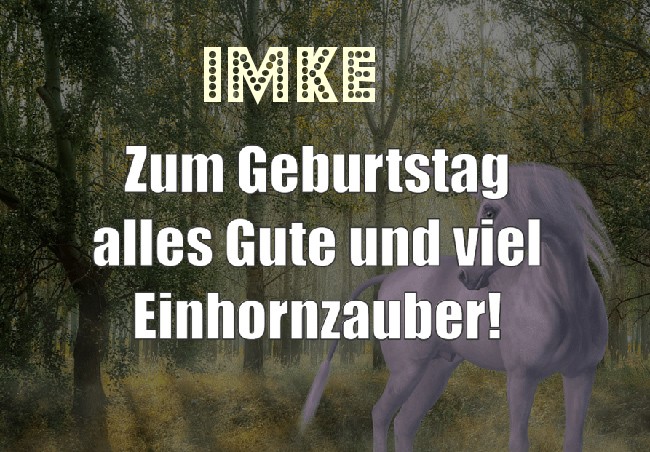 Hier Variation - Zum Geburtstag alles Gute und viel Einhornzauber für Imke!. uf dem Gelande gibt es noch andere kostenlose Bilder mit Namen.