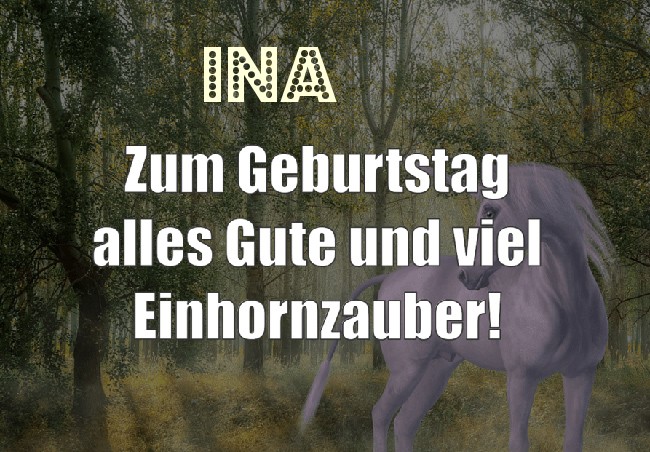 Hier Variation - Zum Geburtstag alles Gute und viel Einhornzauber für Ina!. uf dem Gelande gibt es noch andere kostenlose Bilder mit Namen.