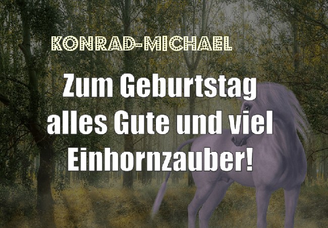Hier Variation - Zum Geburtstag alles Gute und viel Einhornzauber für Konrad-Michael!. uf dem Gelande gibt es noch andere kostenlose Bilder mit Namen.