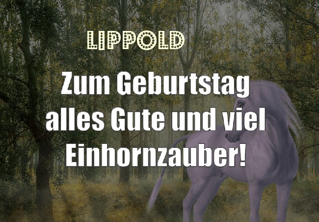 Hier Variation - Zum Geburtstag alles Gute und viel Einhornzauber für Lippold!. uf dem Gelande gibt es noch andere kostenlose Bilder mit Namen.
