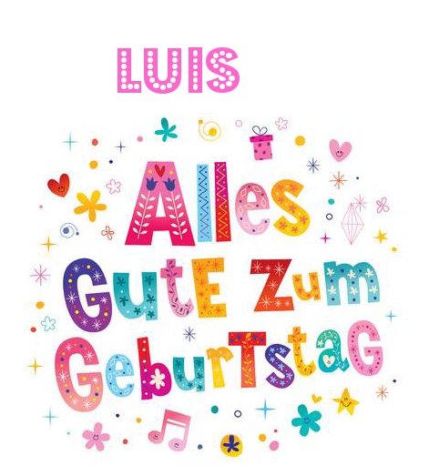 Hier Variation - Bunte Geburtstagsgrüße für Luis. uf dem Gelande gibt es noch andere kostenlose Bilder mit Namen.