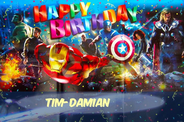 Hier Variation - Geburtstagsgrüße für Tim-Damian von den Marvel-Helden. uf dem Gelande gibt es noch andere kostenlose Bilder mit Namen.