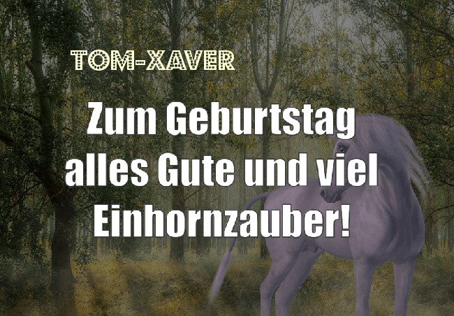 Hier Variation - Zum Geburtstag alles Gute und viel Einhornzauber für Tom-Xaver!. uf dem Gelande gibt es noch andere kostenlose Bilder mit Namen.